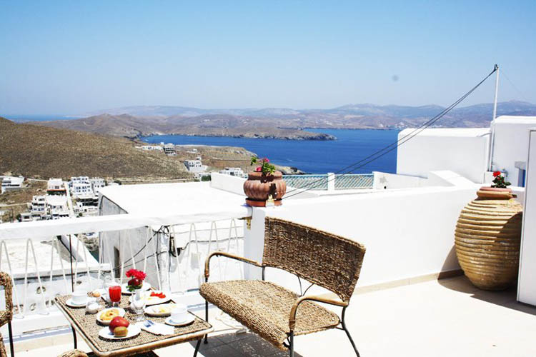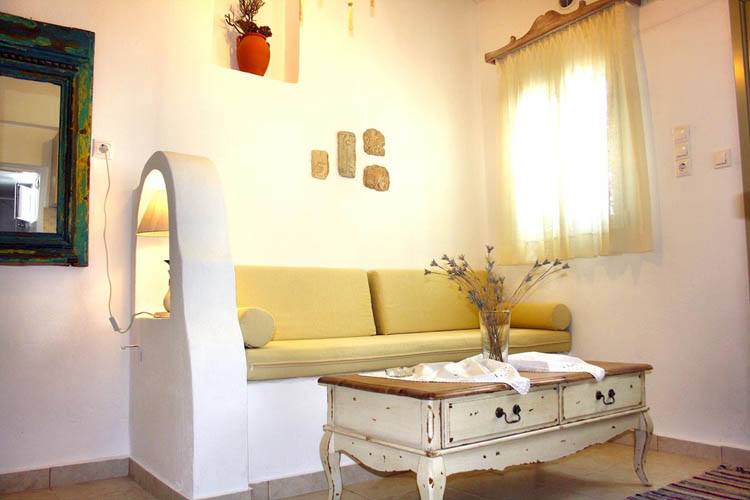Oλα τα δωμάτια διαθέτουν διπλό κρεβάτι, χτιστούς καναπέδες, ξεχωριστά μπάνια και θέα στον κόλπο του Πέρα Γιαλού.